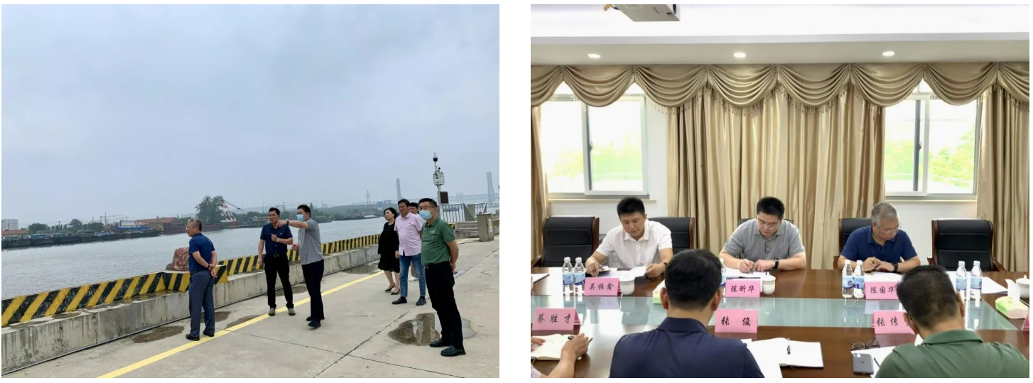 7月20日,陆港集团总经理陈昕华同志带队在新洋港水上服务区调研工作。