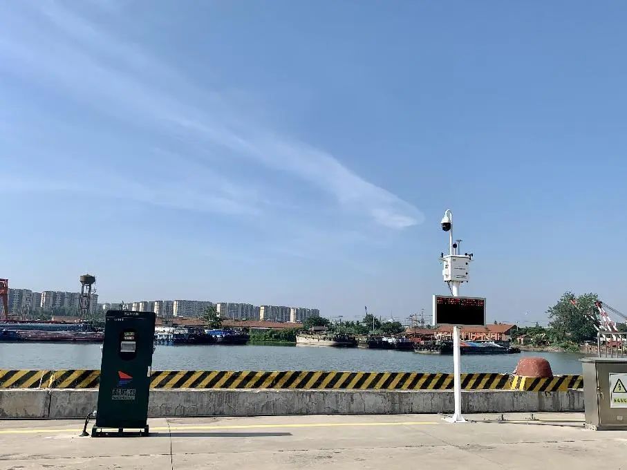 水上服务区岸线绿色能源充电桩、粉尘监测仪。