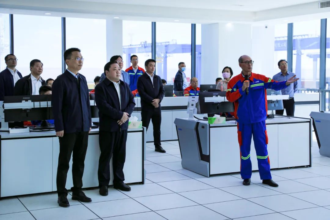 仪式结束后,与会领导还前往自动化集装箱堆场指挥中心,详细听取现场操作讲解,并观摩堆场运营情况。
