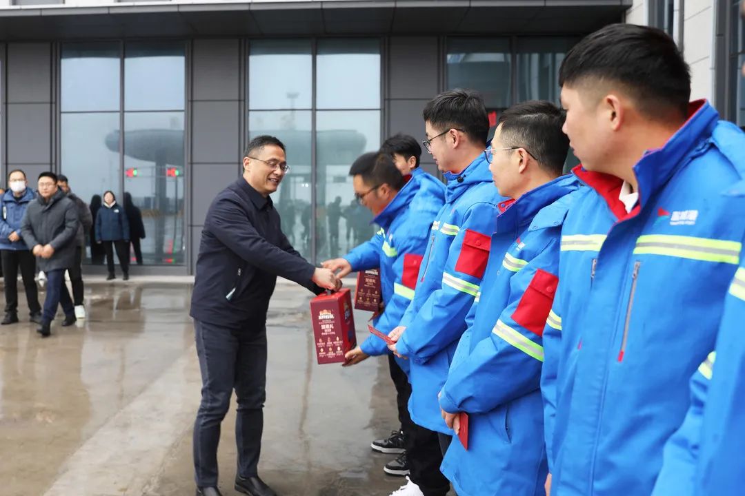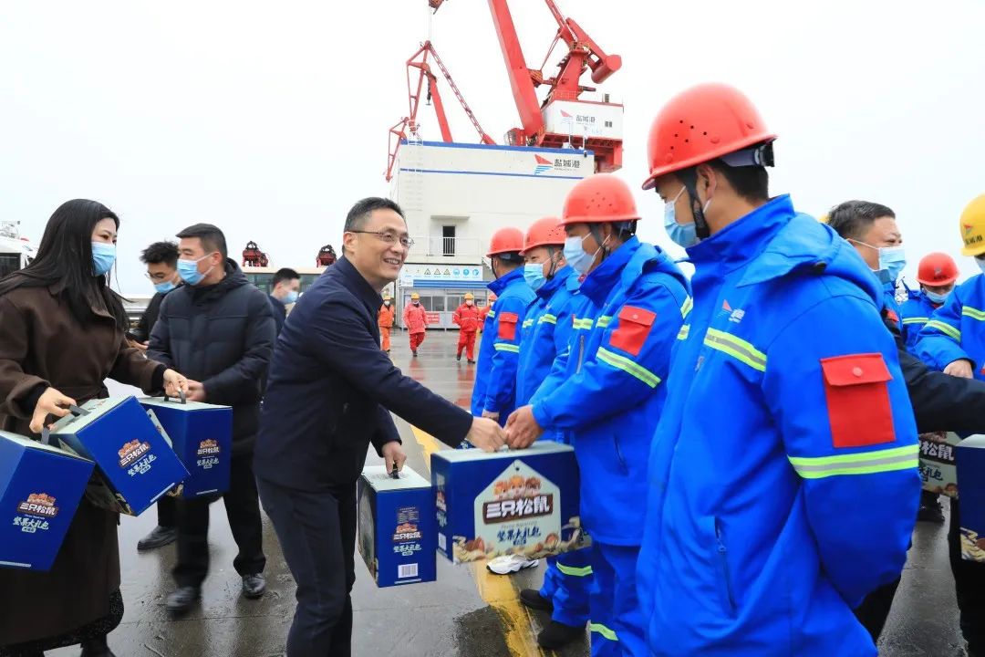1月22日,大年初一,码头一线到处洋溢着节日喜庆气氛。受集团党委、董事会委托,当天上午,集团党委副书记、董事、总经理陆帅率队前往大丰港区看望慰问坚守在一线工作岗位的工作人员,代表集团党委、董事会向他们致以新春的祝福和节日的问候。盐城海关二级高级主办李健,集团副总经理袁欣等参加。