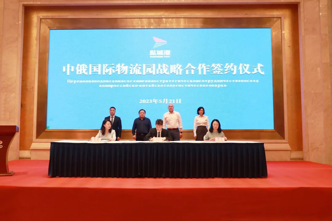 5月21日,中俄国际物流园战略合作签约仪式成功举行,集团党委书记、董事长周正雄,大丰区委常委、大丰港经济开发区党工委书记黄同城,理货远东有限公司副总经理阿纳列耶夫·奥列格出席会议并分别致辞。集团党委副书记、董事、总经理陆帅主持活动。高尔基汽车厂集团副总经理布雷金·弗拉基米尔,商业能量有限公司副总经理赫鲁连科·阿娜斯塔西娅,大丰港经济开发区管委会主任密云等参加。集团副总经理袁欣代表集团进行签约。