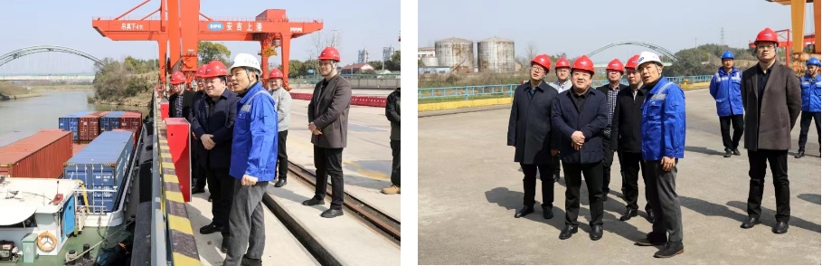 周正雄一行实地察看了浙江安吉港作业现场,详细了解港区泊位规模、运输模式及生产运营相关情况。