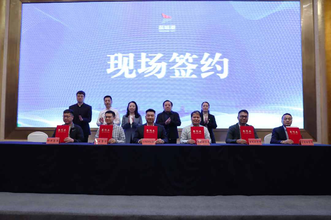 活动现场,“淮海战役”党员突击队负责人进行化肥产业链港口服务介绍,大丰港区相关负责人与企业代表签订合作协议。