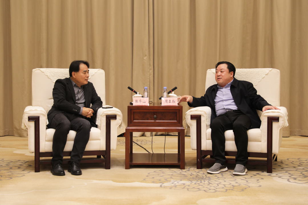 10月28日,集团党委书记、董事长周正雄会见蚌埠港国际集装箱码头有限公司党支部书记、董事长、总经理张华山一行,双方就推动港口、物流深度合作进行交流。
