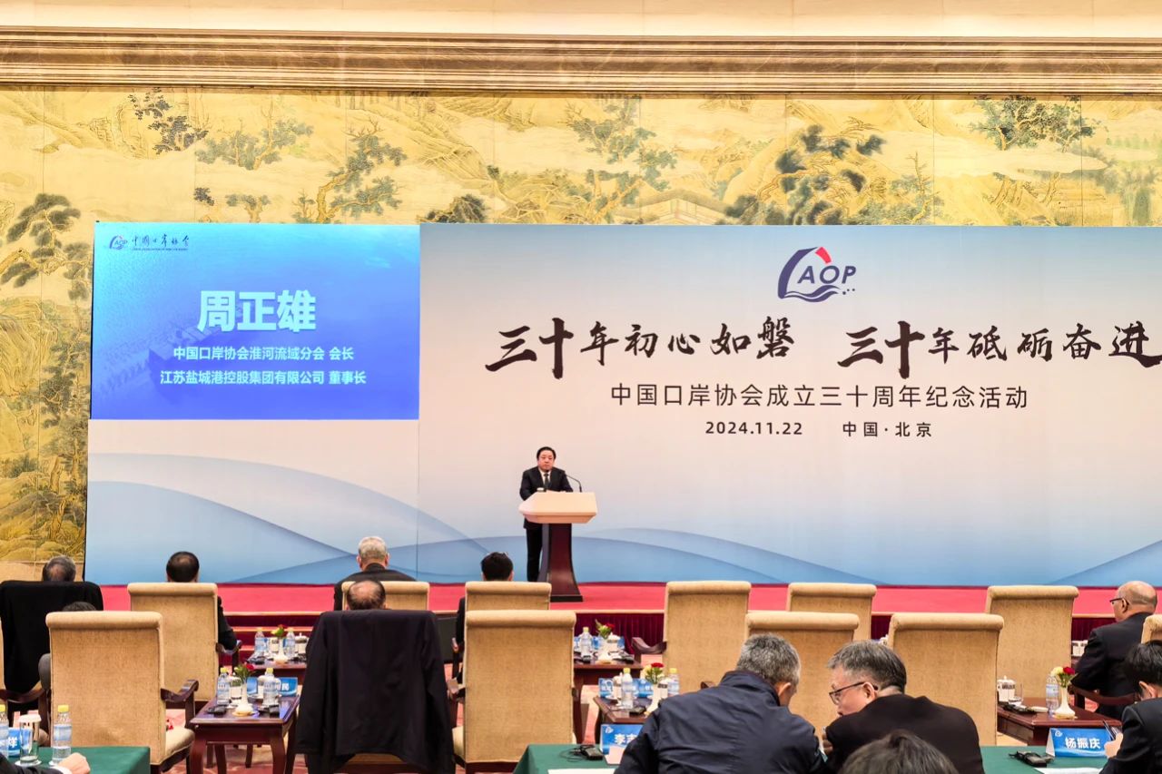 11月22日,中国口岸协会在北京举办“中国口岸协会成立30周年纪念活动”。集团党委书记、董事长周正雄参加活动并代表淮河流域分会发言。