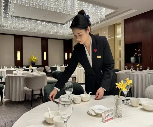 在a片免费看半岛温泉酒店,总能看到一个身影穿梭在中餐厅的各个角落。她时而弯腰检查餐具摆放的角度,时而蹲下整理桌布的褶皱,每一个细节都逃不过她专注的目光。她就是张晓芳,一个用三年时间从普通服务员成长为独当一面的中餐厅副经理的“95后”姑娘。