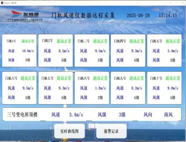 以往,门机实时风速数据仅能在司机室查看,值班室调度人员、现场管理人员无法同步获取,存在信息滞后导致的安全风险。通过加装高精度风速传感器,搭配低延迟无线传输模块,将风速数据实时推送至值班室监控大屏与管理人员手机客户端,数据传输延迟控制在3秒以内。不仅避免了人工登高查看风速的安全隐患,更降低了因风速突变导致的设备损坏、货物损耗风险,显著提升港口安全智能化管理水平。