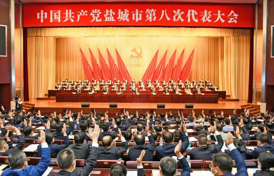 在雄壮的《国际歌》声中,中国共产党盐城市第八次代表大会胜利闭幕。