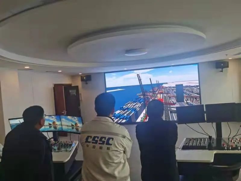 此外,设备技术部一行还参观学习了青岛海西智能港口装备全系统仿真平台,该系统利用数字孪生、数字仿生等先进技术通过模拟自动化堆场作业流程、自动化轨道吊作业工况,通过对比不同方案的关键性能指标参数,为港口运营新建、改造自动化码头过程中提供量化的策略支持和数据支撑。