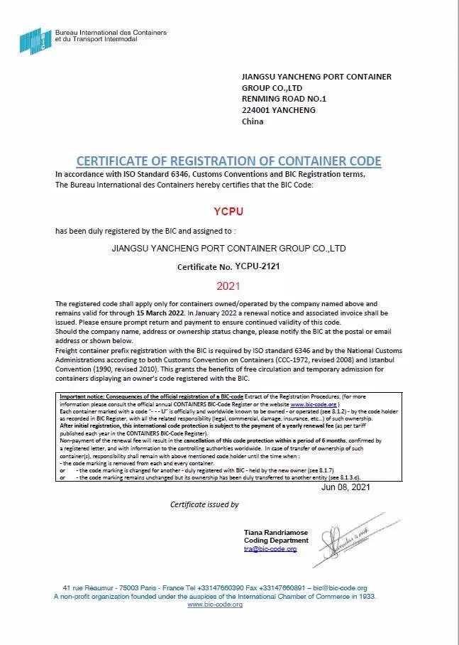 a片免费看 集装箱自备箱全部获得国际集装箱局(法国)登记认证,正式成为可以全球流通的集装箱