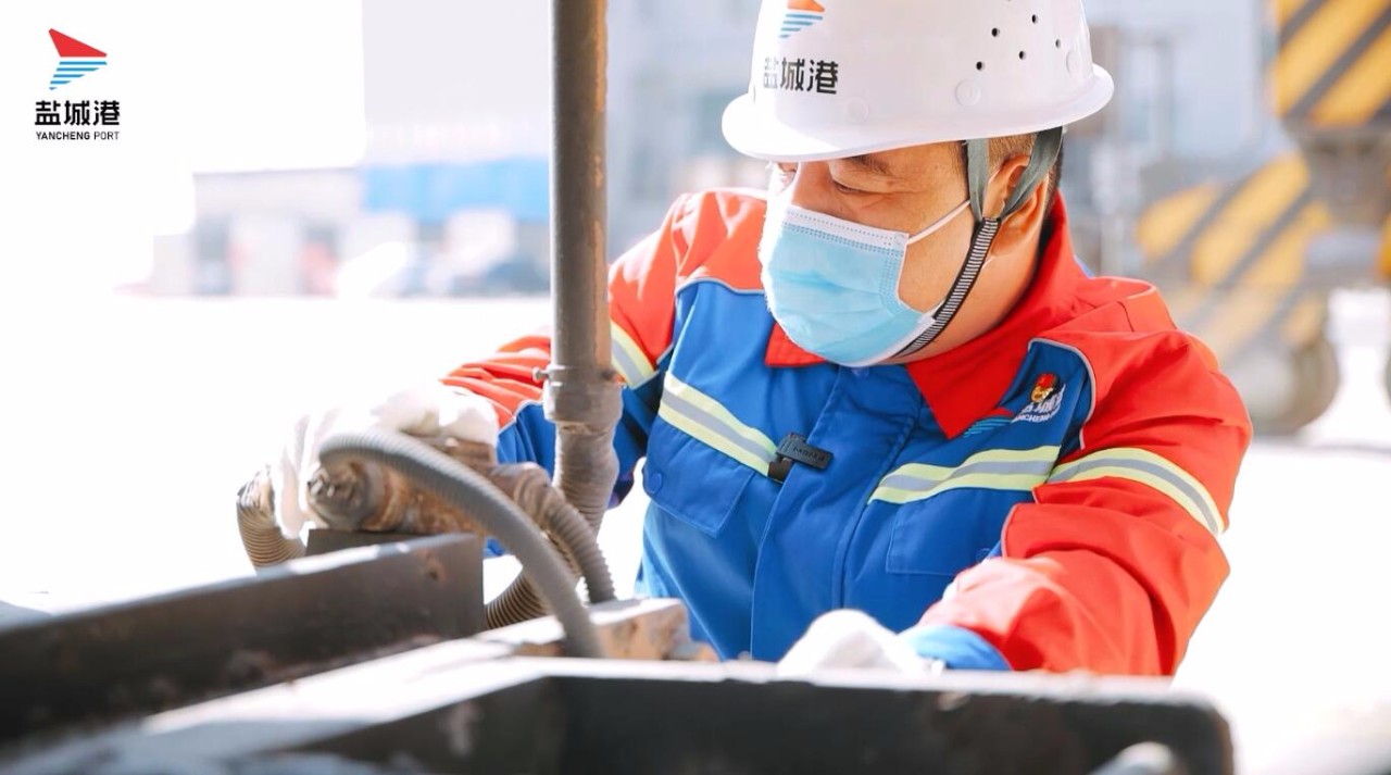 海水拍打着巨轮,溅起朵朵浪花。码头平台上,李飞在阳光暴晒中驾驶着大型机械设备,在川流不息的运输车辆中“旋转”工作。作为大丰港第一代门机操作手,他刻苦钻研,不断积累经验,从年青一代码头门机操作手中脱颖而出,成长为码头生产的一面旗帜。