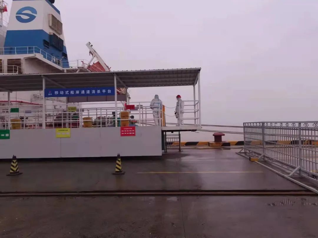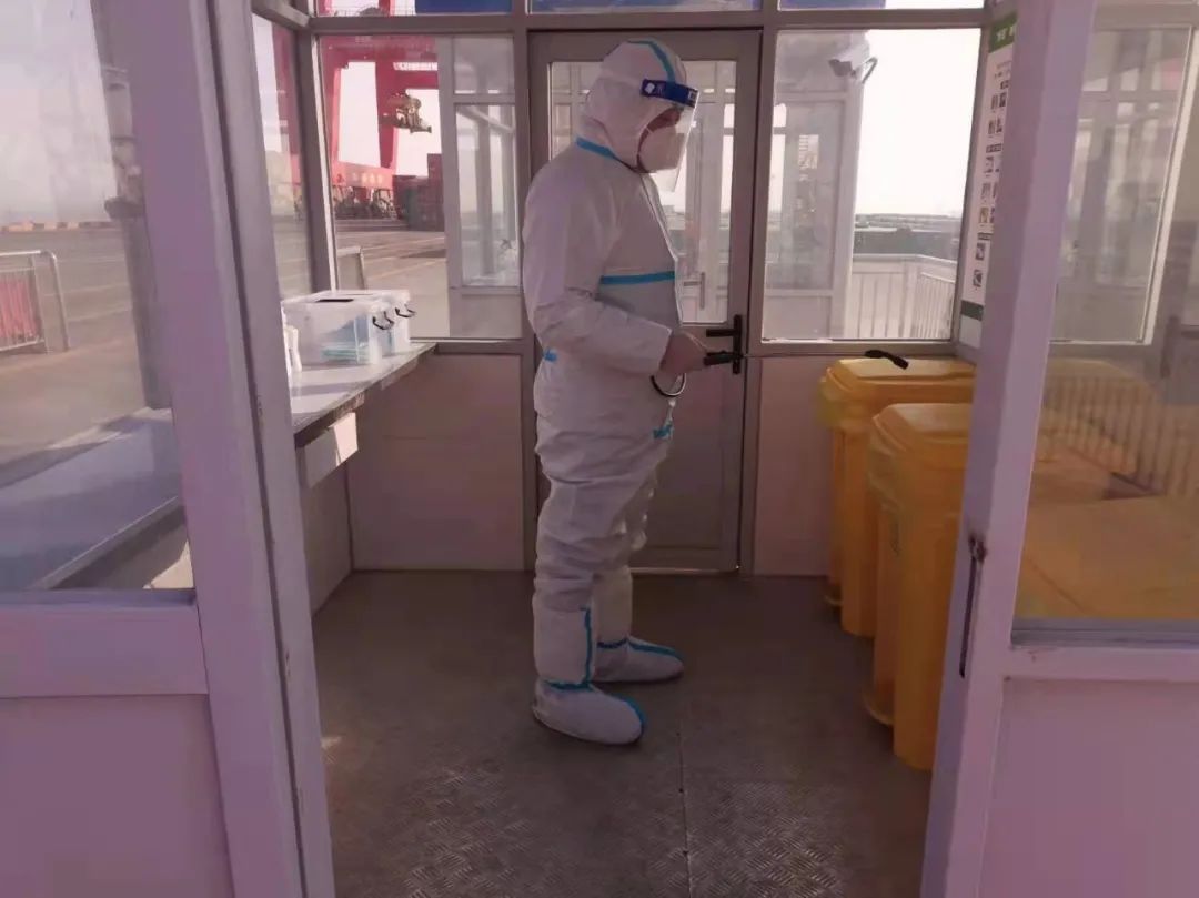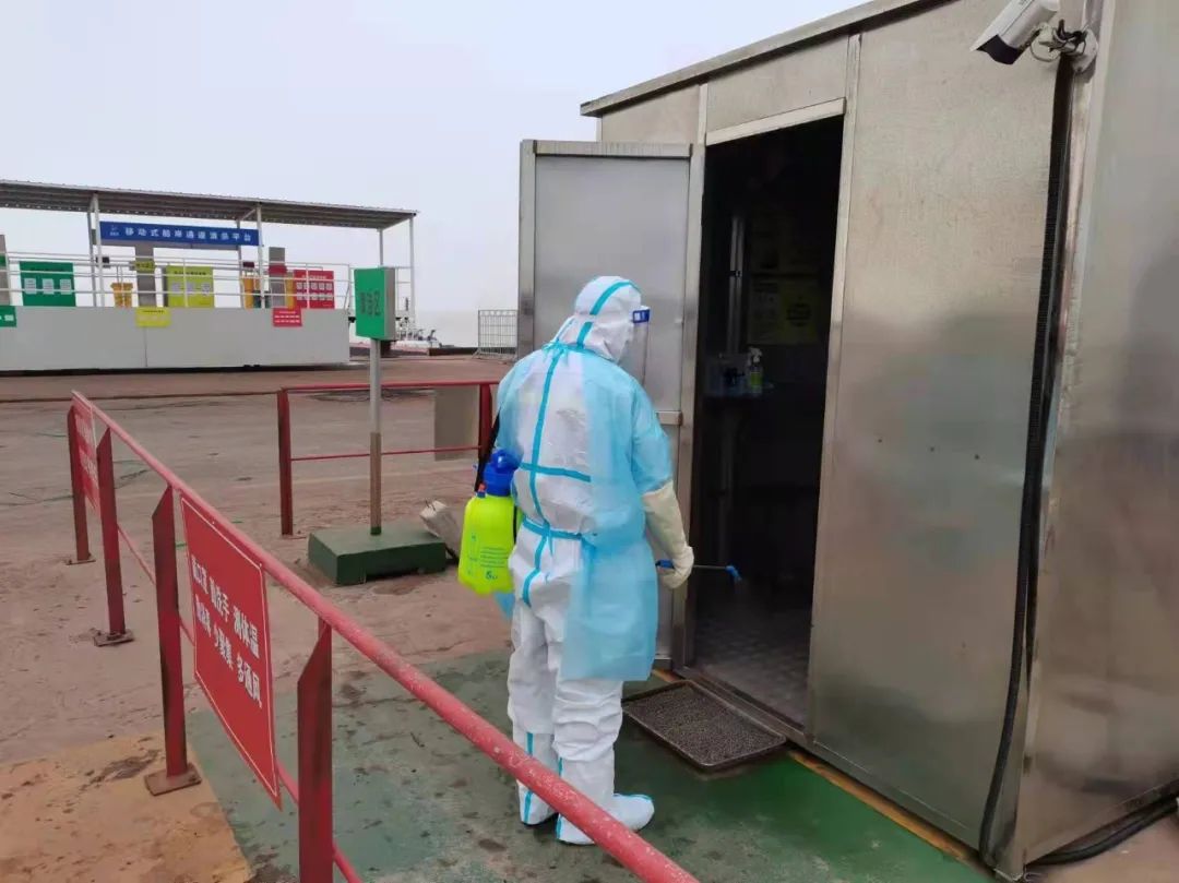 严格执行人员准入制度,进出人员需佩戴口罩,并进行体温测量、信息登记、苏康码及行程码核查。安排专人定时对码头登梯口、防疫值守岗亭、脱卸区、专班集中居住区、专班人员运输车辆、电梯、门把手、食堂等重点场所进行清洁消毒。码头设立固定的巡查人员24小时巡查,同时外轮靠泊期间,严格落实卡口、登轮梯口24小时专人值守,强化梯口管理,对所有登轮人员进行核实登记,监督人员防护措施落实情况,凡是通过梯口人员,必须提供48小时内有效核酸检测证明、疫苗接种证明。
