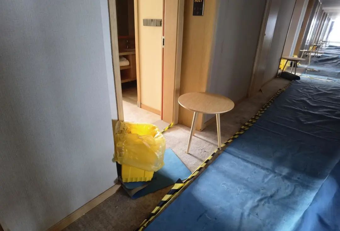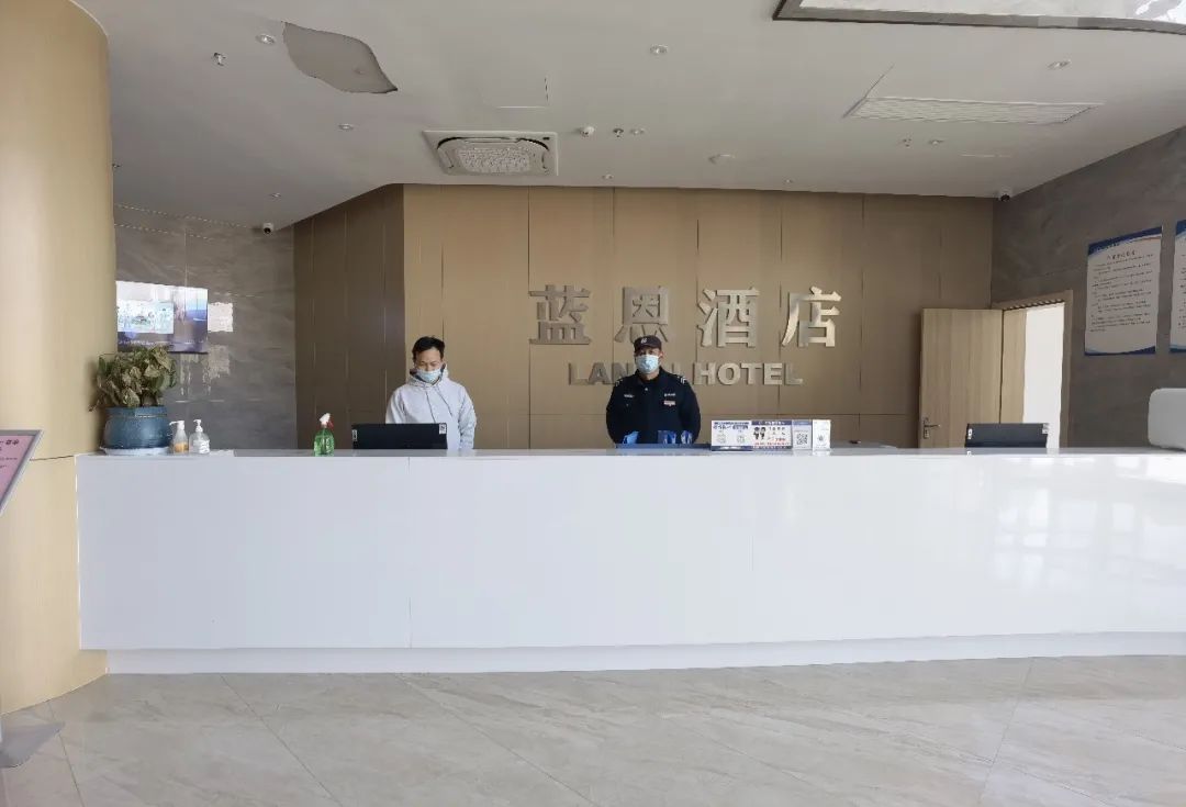 蓝恩酒店原为大丰区指定隔离人员居住酒店,防疫硬件设施齐全。该酒店设有专班人员独立电梯,每间房间门口设有医疗废弃物垃圾桶和送餐桌,监控24小时无死角,保障了防控的闭环管理。