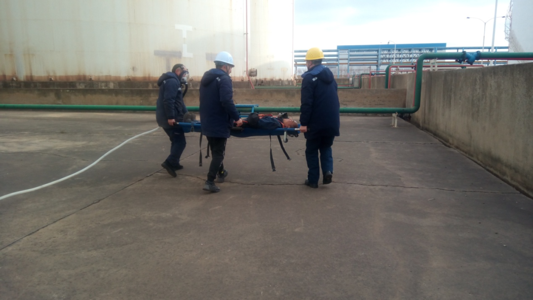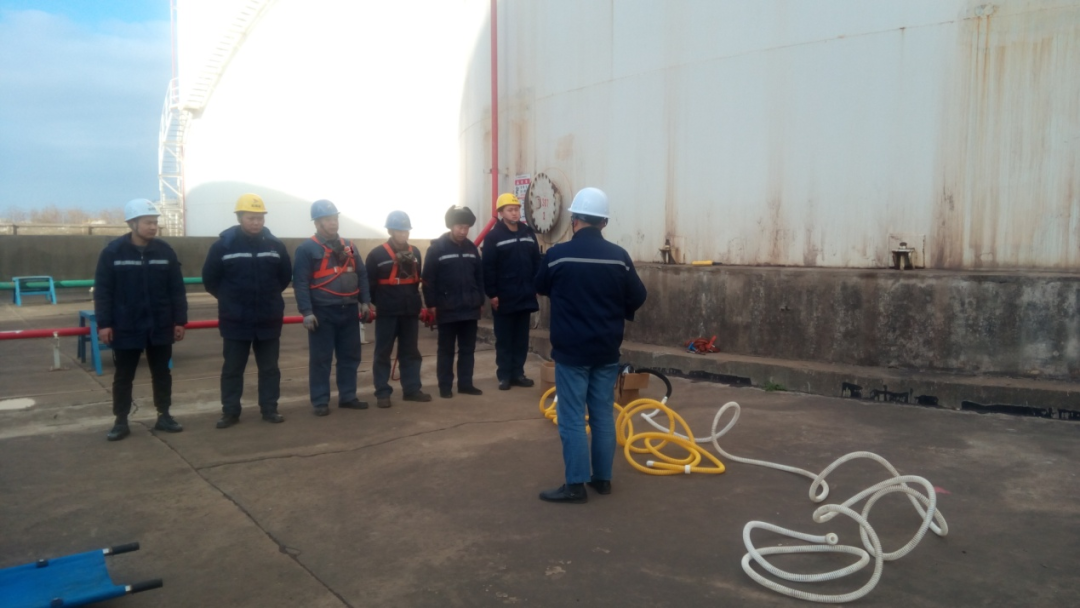 本次演练主要通过模拟作业人员进入储罐作业时,未按公司操作规程进行,在发生的受限空间事故时,如何通过正确使用应急救援物资在现场进行救援。
