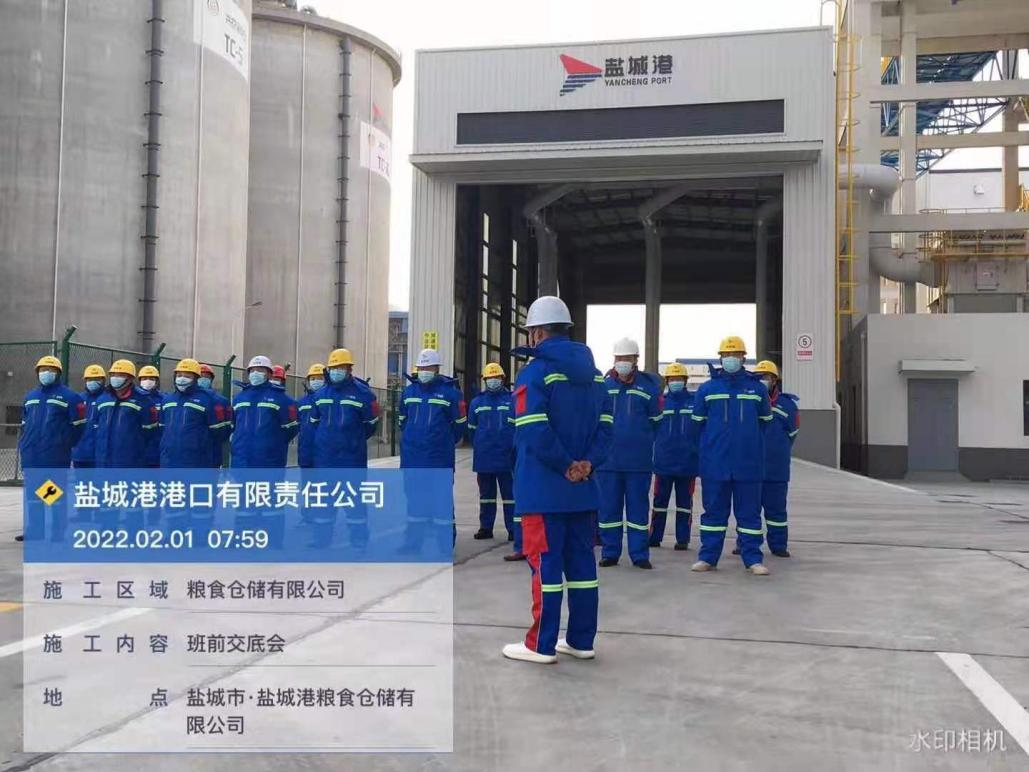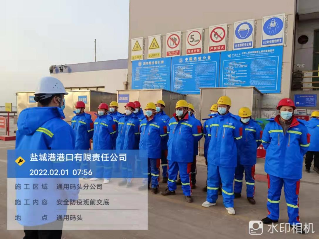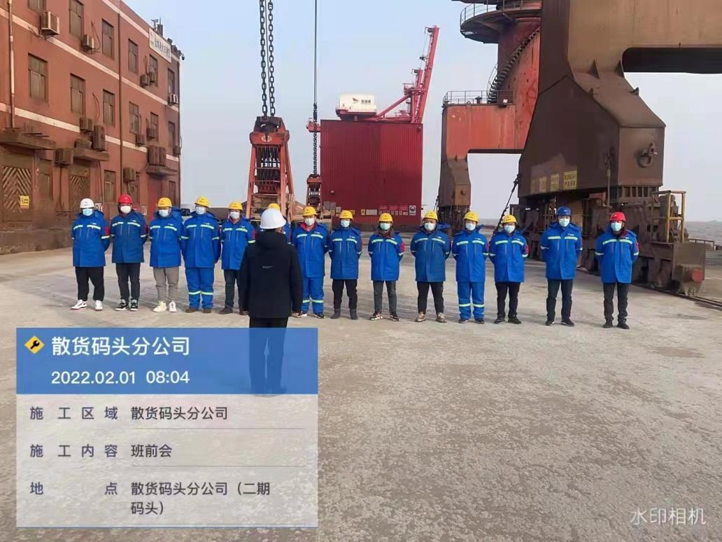 农历正月初一,a片免费看大丰港区港口公司各子(分)公司在码头(作业现场),如往常一样准点开始作业班前会,进行安全生产、疫情防控工作交底。