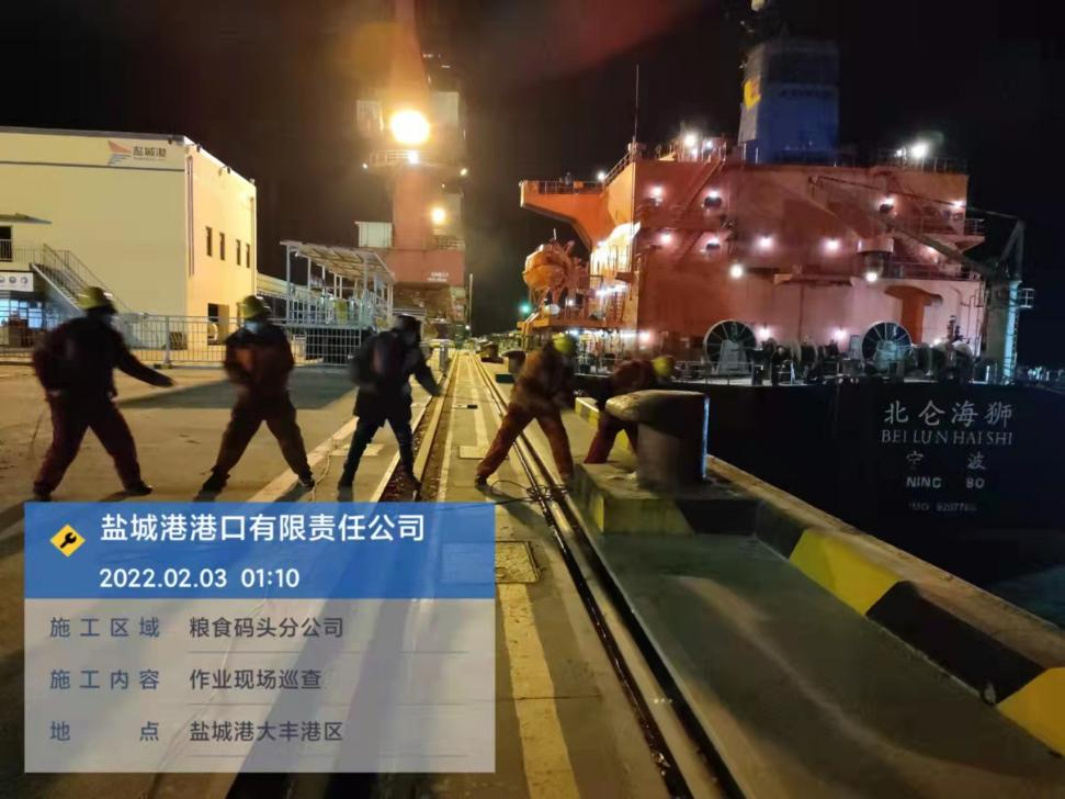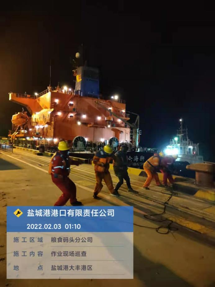 农历正月初三,a片免费看大丰港区港口公司码头共停泊4条外贸船作业,公司安全管理人员进行了24小时不间断巡查。