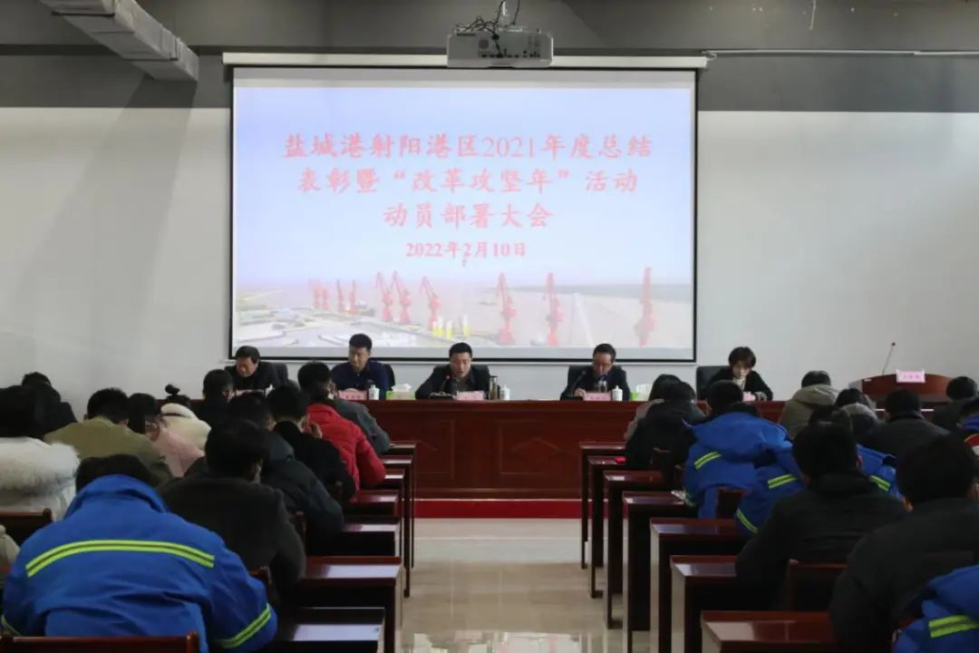 会议全面传达学习了周正雄书记在“改革攻坚年”活动动员大会上的重要讲话精神,明确了“改革攻坚年”“经营兴航年”两个“主题年”活动总要求,射阳港生产业务部(风电进出口港公司)、工程建设部和安全环保部就2022年工作作表态发言。