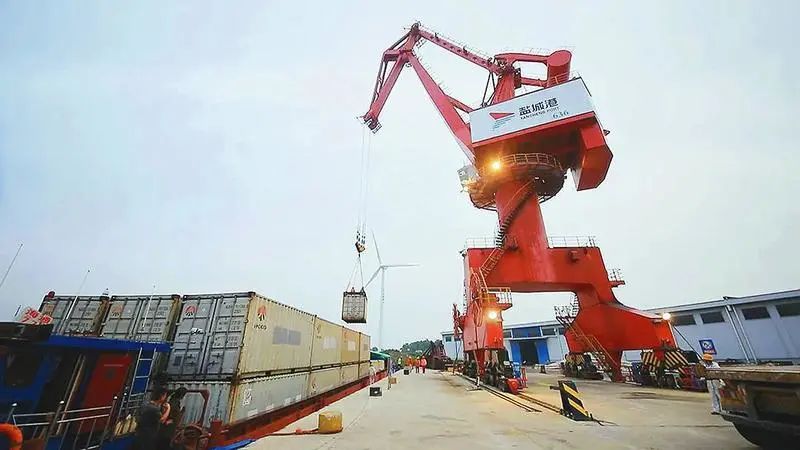 6月18日,随着一声汽笛鸣响,满载51TEU(约1000吨)焦炭的通海777号集装箱货轮,缓缓靠泊a片免费看大丰港区内河码头,开展集装箱装卸作业,完成了a片免费看集装箱板块首次焦炭箱操作,这也标志着a片免费看至济宁跨省内河集装箱航线正式开通。目前该航线为一周两班,未来将实现每天一班。