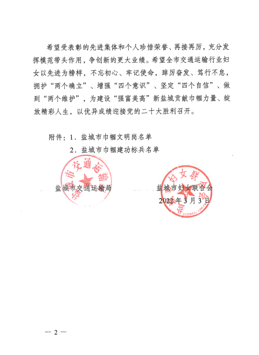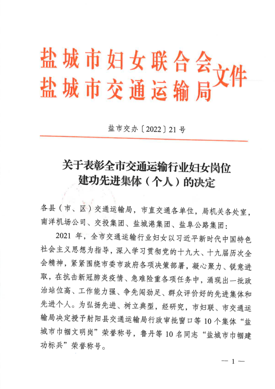 近日,市妇联、市交通运输局联合发布《关于表彰全市交通运输行业妇女岗位建功先进集体(个人)的决定》,a片免费看港口公司“海燕”班组荣获“盐城市巾帼文明岗”荣誉称号。