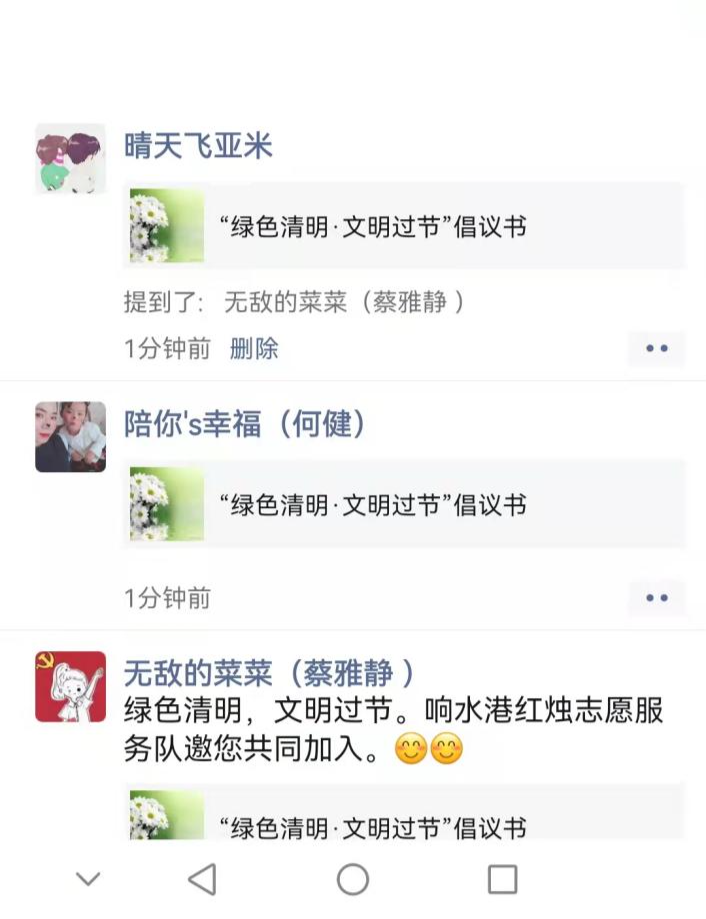 此举得到了港城居民的一致好评,纷纷表示愿意加入“绿色清明·文明祭祀”之行中,港区青年也在活动中更加坚定自己的信念初衷,更加执着自己的行动之力。