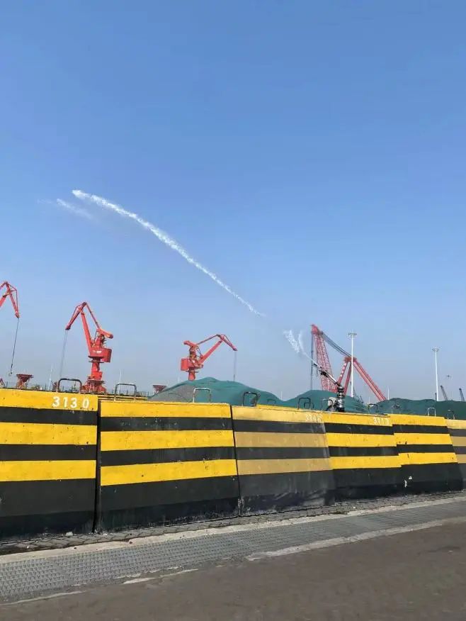 疫情形势依然严峻,响水港区在抓好疫情防控的同时不放松绿色生态港口建设。为提高喷淋系统的喷射覆盖区域,公司对喷淋设施的喷枪头进行改造,由原来的水柱喷射改为扇形喷射,改造完成之后将大幅度提高喷淋面积。此外,港区防风网正在建设当中,待防风网建成投入使用后,将进一步提高响水港区场地粉尘治理水平。