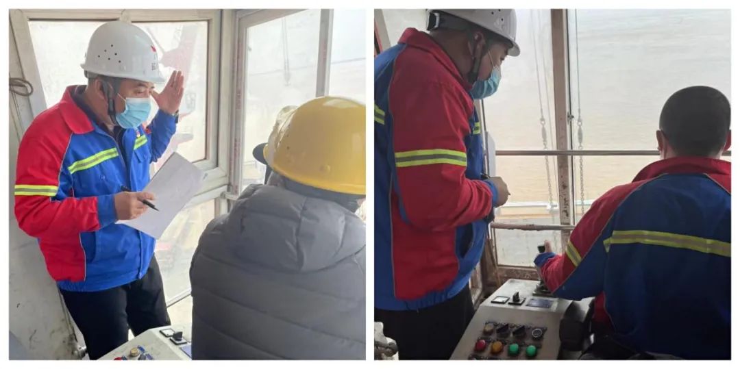 在操作考核中,参赛人员们全神贯注、冷静应对,克服阵风带来的不利影响,以“快、稳、准”为基本要求,精准完成“控钩、稳钩、走钩”等门机操作动作。在距离地面28米的操作室里,监考官屏气凝神,以“公平、公开、公正”为原则,根据实际作业货种情况,严格按照操作规程,以眼镜为尺,严把参赛人员每个细节、每个操作、每个环节。