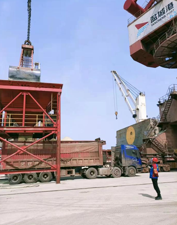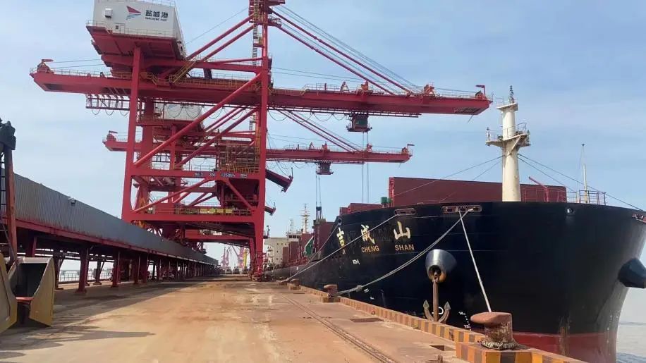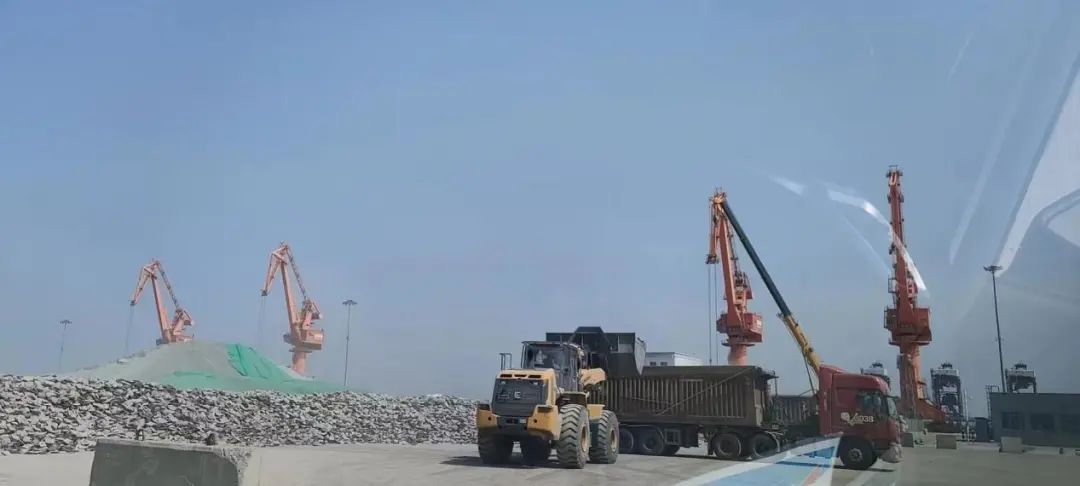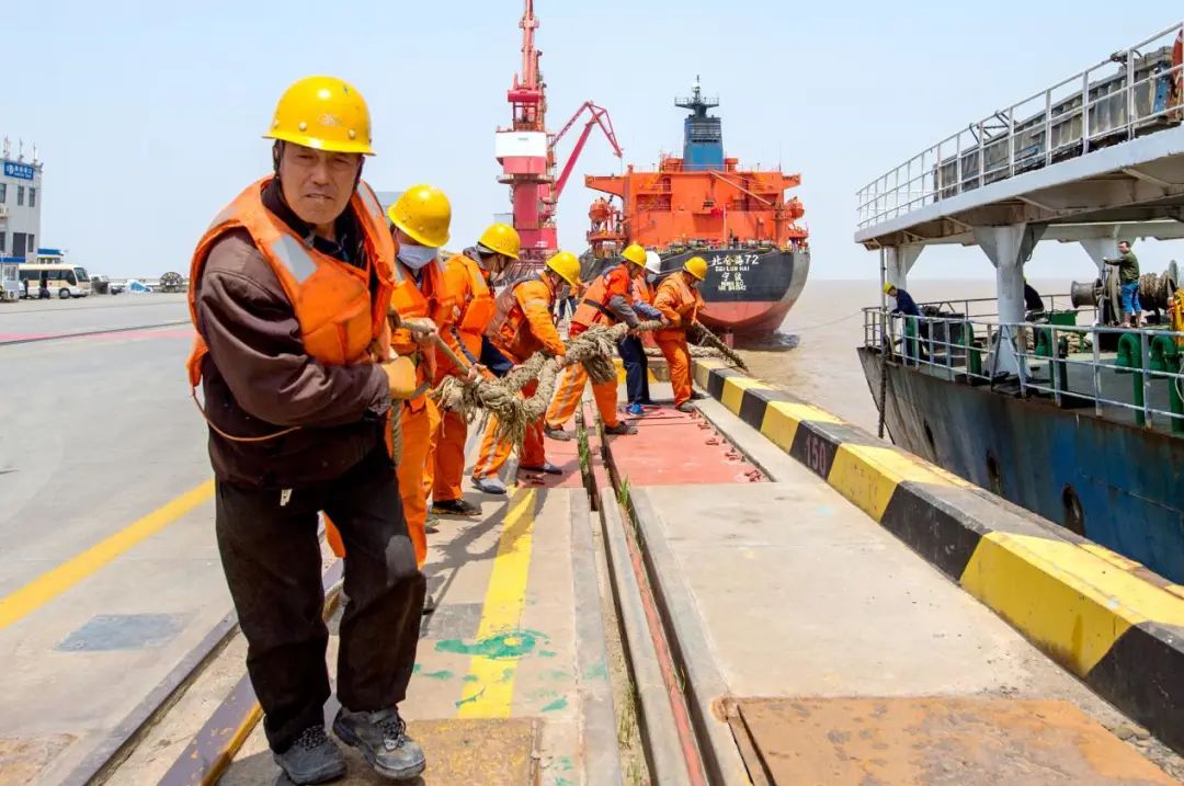码头上,车来车往,装船卸船,一片繁忙。一线员工们各司其职,熟练地操作着机械设备,现场作业井然有序。