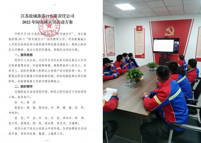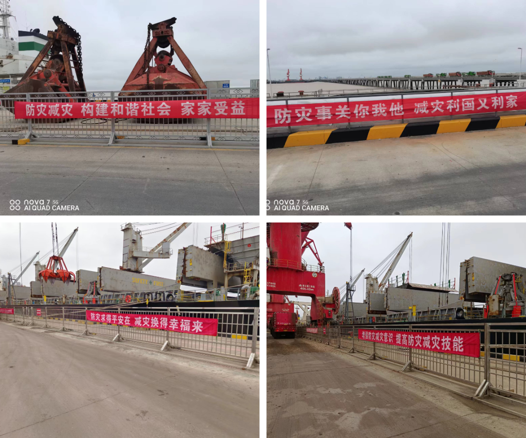安全生产、防灾减灾永远在路上。港口公司制定防灾减灾日活动方案,成立由主要负责人牵头的领导小组,在全公司范围内开展“应对灾难和事故”专题培训。培训的主要内容为:防地震、防洪防汛、防台风、防大雾、防强对流天气、码头机械防风等自然灾害的应对措施。