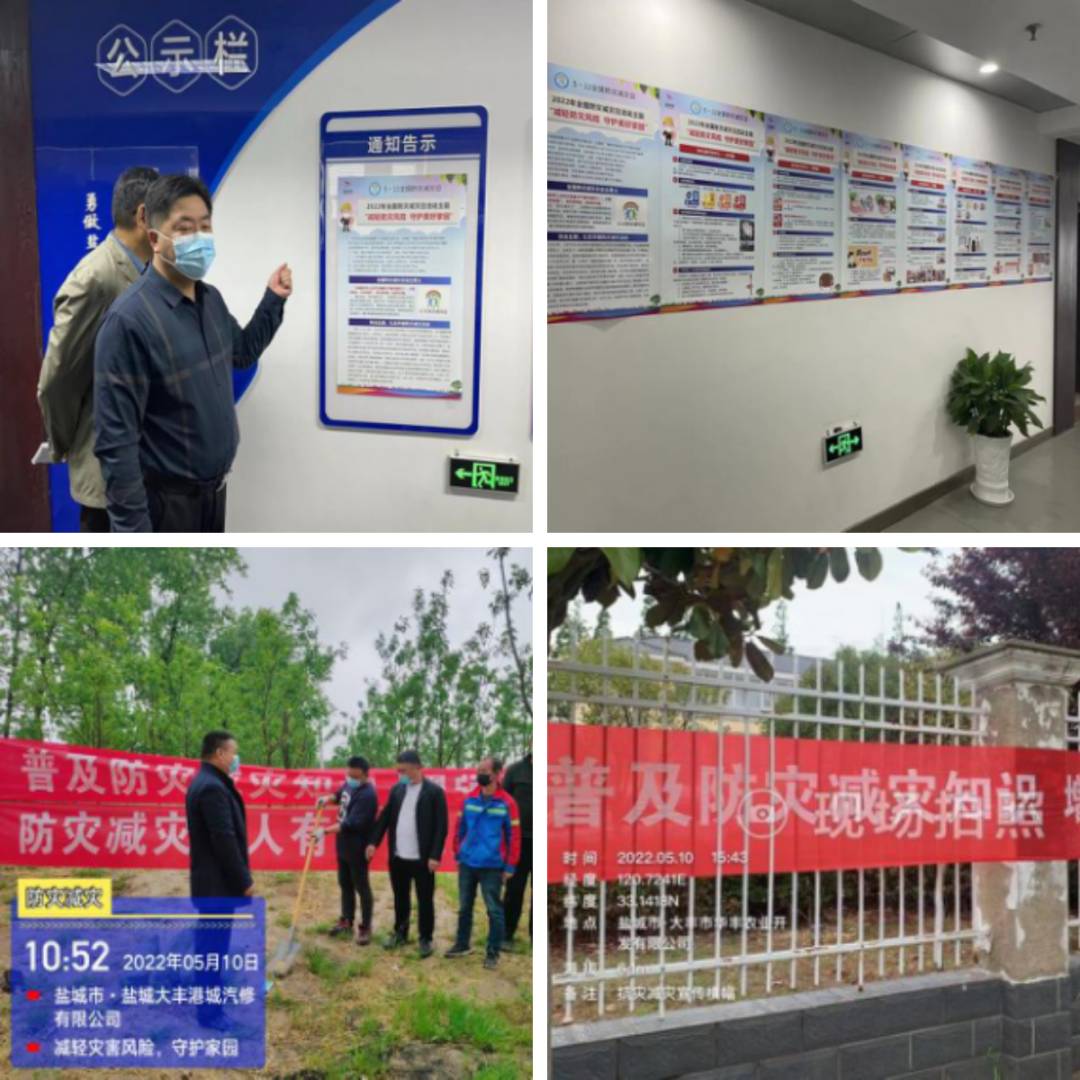 大丰港区及各子(控)公司通过张贴“2022年防灾减灾”主题宣传海报、悬挂横幅、微信群推送防灾减灾科普知识等方式,全面开展防灾减灾宣传活动,营造浓厚的防灾减灾宣传氛围,同时组织人员对防灾减灾知识点进行讲解,进一步增强员工安全意识,防灾减灾安全技能和素质。