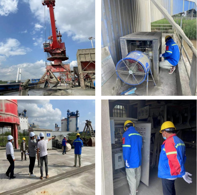 重件码头分公司组织开展门机作业故障排除应急演练。演练模拟门机作业在熟料入库时,在入料斗时发现提升机处冒出大量黑色浮尘的场景。门机司机发现险情,报告于现场调度,一系列的故障排除措施有序开展,维修人员查找故障为较多大块凝固体在提升机中导致无法作业,随即清理障碍,重新启动机器。此次应急演练,充分展现了作业人员在码头大型装卸设备作业的安全应急能力以及后续影响处理能力。