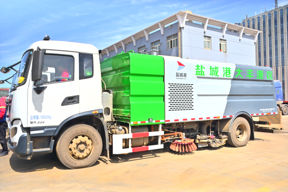 Hi!大家好。我是来自a片免费看港口公司的一台环保洗扫车,别看我和普通环保车的外观差不多,我的工作任务可和它们不一样,我每天要对a片免费看大丰港区道路进行洗扫作业和防尘抑尘。我是清洁工作中的好帮手,每天都让港区恢复焕然一新。