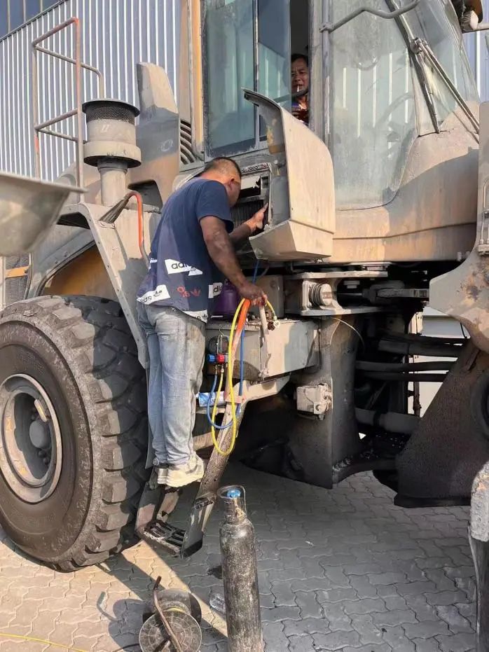 抗战高温作业,技术保障先行。由于港口作业环境相对恶劣,机械设备容易积载各类粉尘,加上港口机械振动大,生产高峰时又基本24小时换人不换机连续作业,因此各类散热系统及空调系统容易发生各类故障,炎热高温天气更容易引发各类事故。为彻底消除该隐患,从6月中旬开始,响水港技术条线根据工作计划,组织相关专业人员对作业机械逐台进行了检查,对检查中过程中发现的各类问题立即落实相应整改,据统计,本次专项检查共对3台装载机、1台挖机设备散热装置进行了维护清洁保养,对6台门机、4台装载机、1台牵引车空调进行了加氟等措施进行了保养。