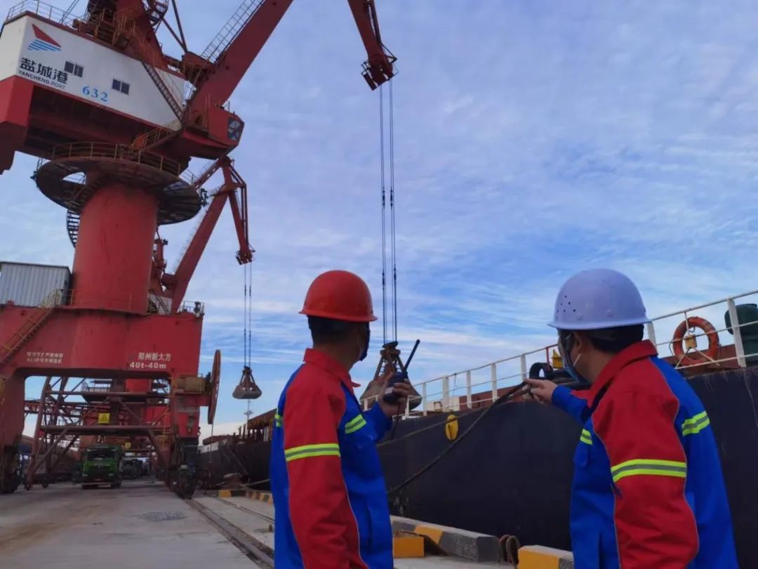 粮食码头分公司深入组织召开“增产提效、冲刺双过半”动员大会,研究制作新式抓斗工艺,利用不拆装抓斗就可直接吊装挖掘机进出舱的方式,进一步压缩辅助作业时间。利用新小型挖掘机创新清舱新工艺,门机单船作业效率提升5%以上,可节省10万吨级船舶作业时间5小时。公司领导干部深入基层、坚守一线、现场指挥,充分发扬党员带头冲锋精神,仅用36小时就创下“鑫拓”轮五万多吨机制砂卸船任务的新纪录,最高效率达1450吨/小时。