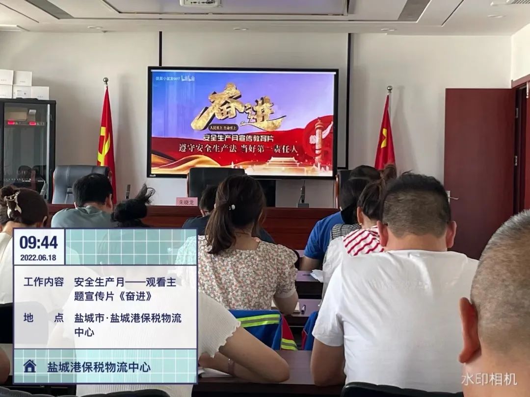 保税物流中心充分利用学习时间,召开全体员工安全生产工作学习会议,组织全员集中观看安全生产月主题宣传片,解读方面典型案情通报,促使全体员工以案为鉴、以案明纪。