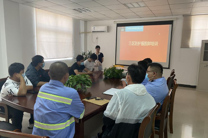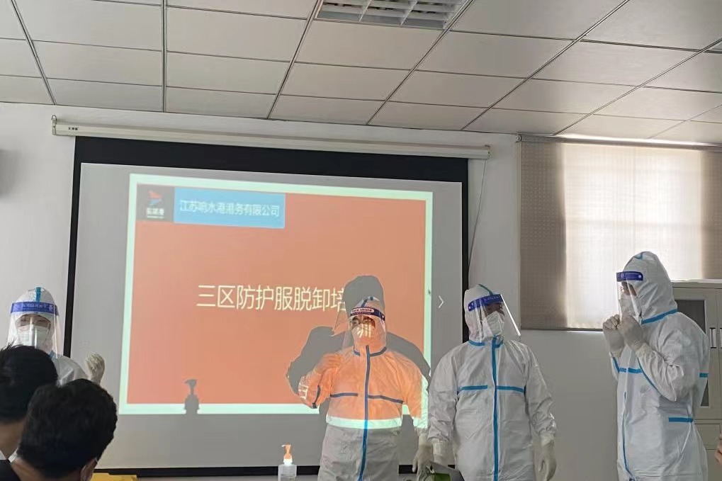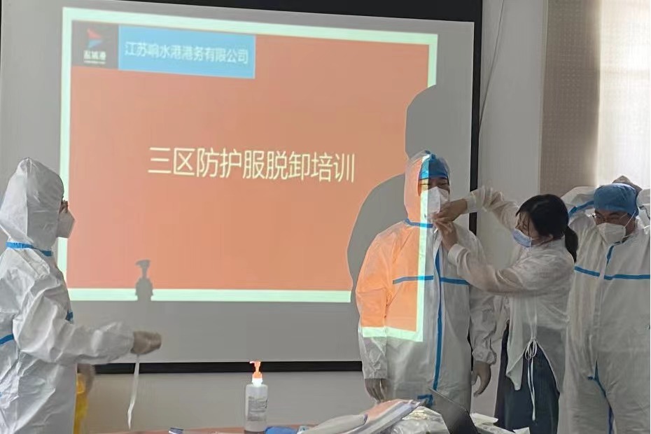 为坚决打好新型冠状病毒疫情防控阻击战,全面提高应对疫情的响应能力,熟悉应急处置具体流程,从严抓好疫情防控工作,近日,响水港区港务公司特邀响水县港城医院专职医护人员,对港区作业人员进行疫情防控相关的三区防护服穿脱消杀培训。
