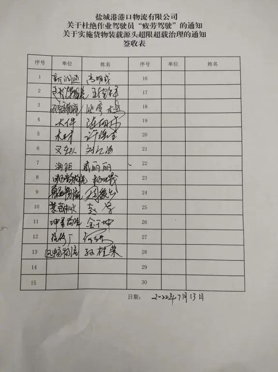 物流公司根据相关文件精神,认真组织各车队、修理厂、外包外协单位负责人、安全员进行逐条学习,及时与其他子(分)公司做好衔接工作,切实抓好源头治理超限超载,同时要求各层级负责人将文件内容传达至全体职工,真正做到横向到边,纵向到底,确保所有参加港区作业人员都是“安全吹哨人”。