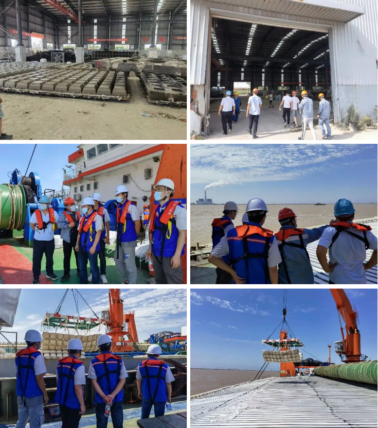 本次“突击式”检查,盐北区域分公司相关管理人员分别前往射阳预制件工厂和防波堤施工现场,对联锁块从工厂预制成块到施工现场铺排船施工全过程进行检查。管理人员对于工程的关键工序和隐蔽部位实行跟踪管理,确保工程质量处于受控状态。