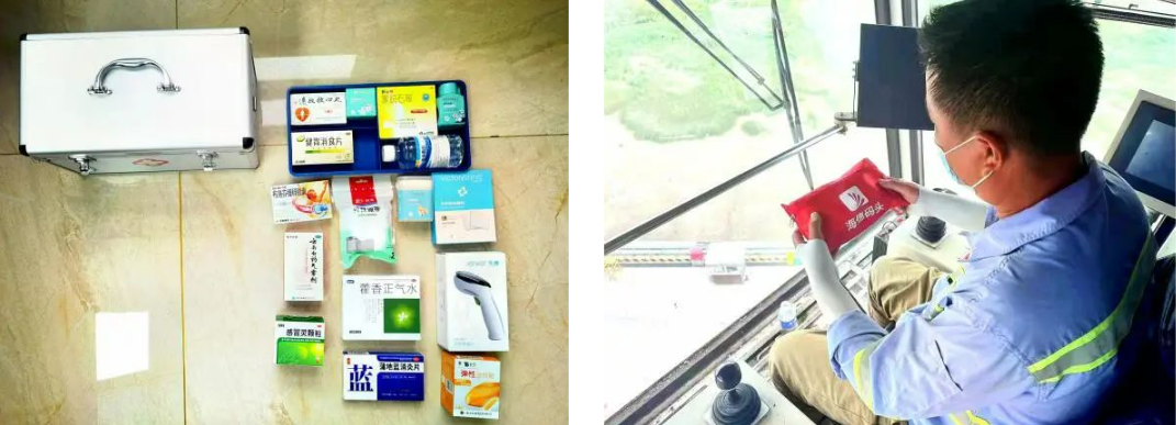 响水港区贴心地在门机操作区、码头休息区、办公区都准备了应急药箱。药箱虽小,“五脏俱全”。内含体温计、感冒冲剂、急救类常用药品及医用纱布、碘酊等常备创伤性医疗应急物品。点滴之处见真功,细微之中见真情。小小药箱把对员工的关爱落实到实处,让员工切身感受到了集团的呵护与关爱。