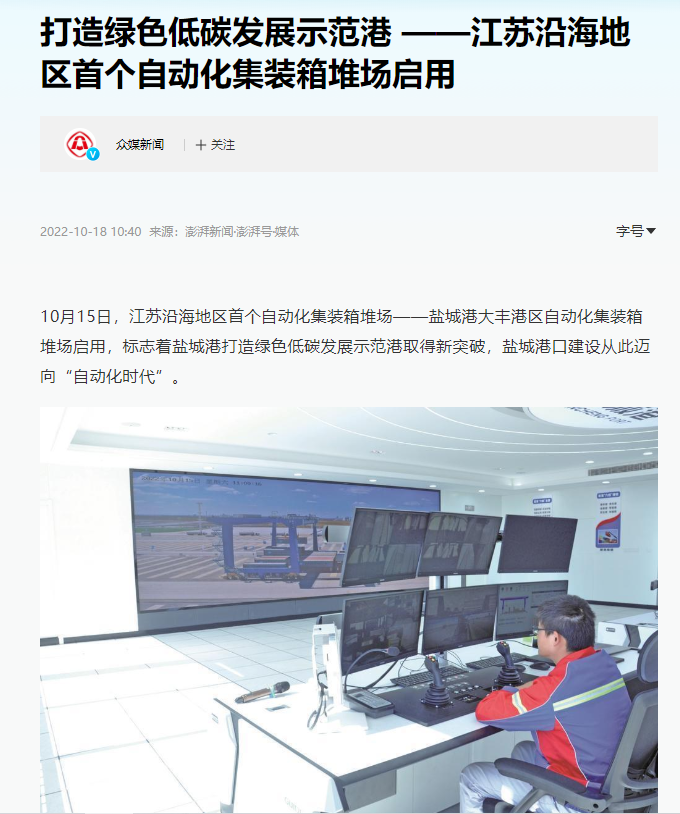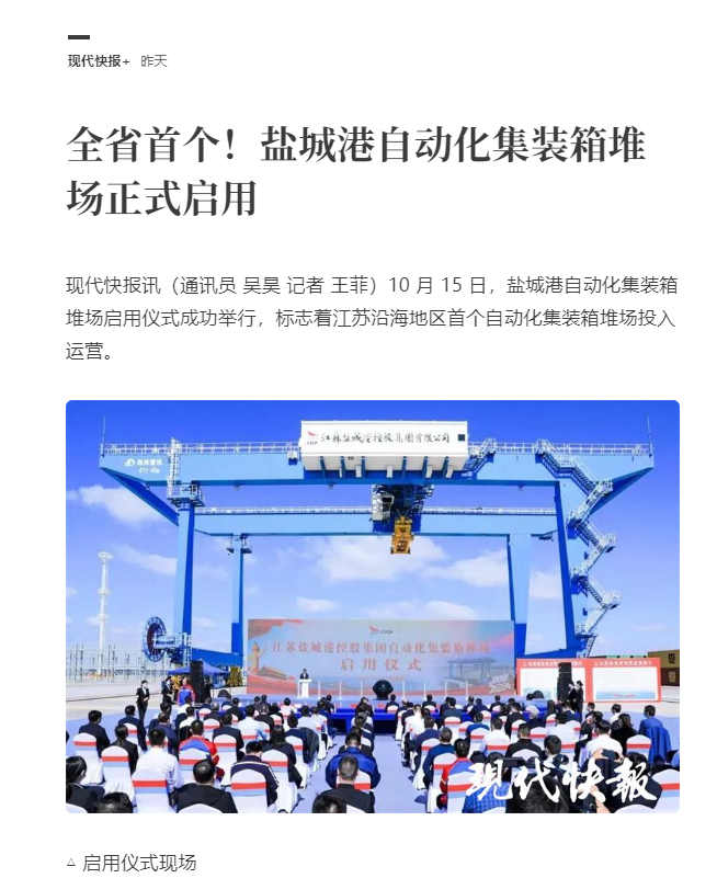 江苏沿海地区首个自动化集装箱堆场——a片免费看大丰港区自动化集装箱堆场正式启用