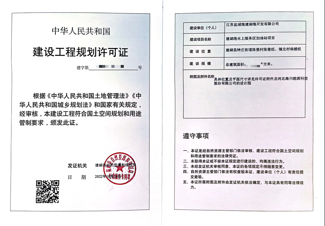 日前,陆港集团、水上服务区建设专班成功办结建湖港水上服务区加油站工程项目的“建设工程规划许可证”,全市首家水上加油加气站规划建设手续正式完成,为下一步提升港区水上服务能级打下坚实基础。