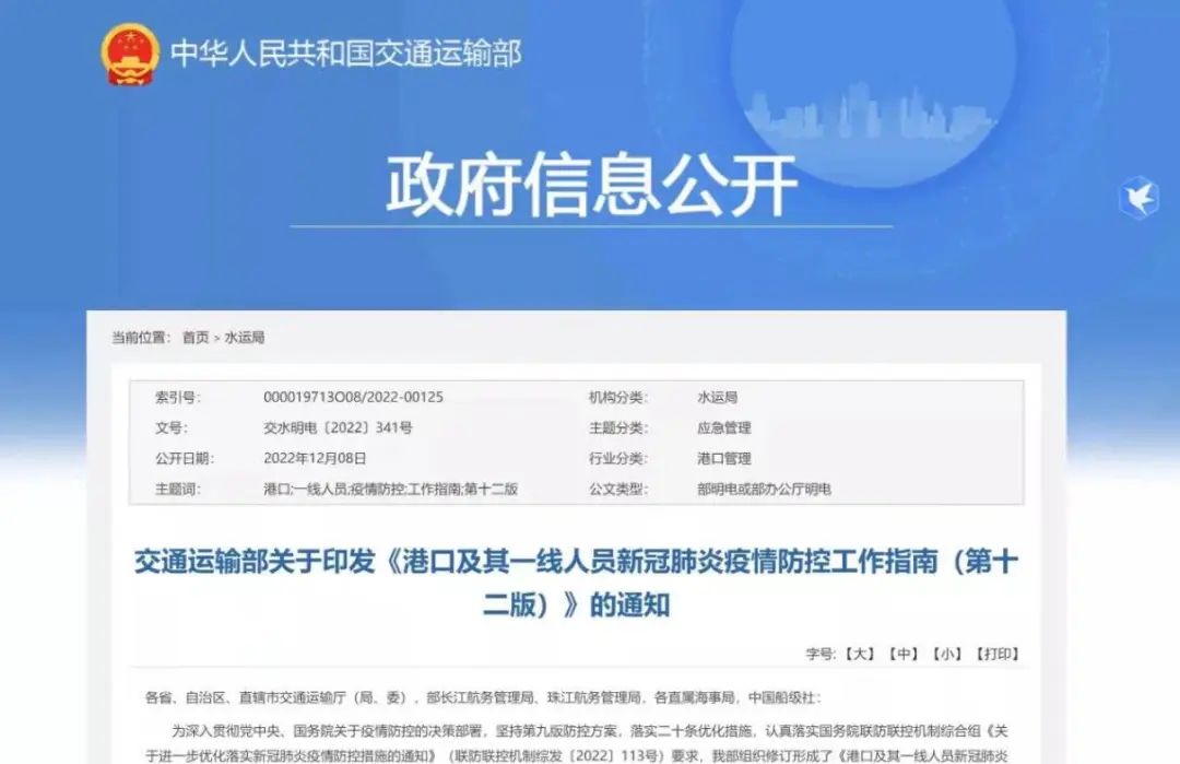 船舶靠港前不再需要船员提供新冠病毒检测信息