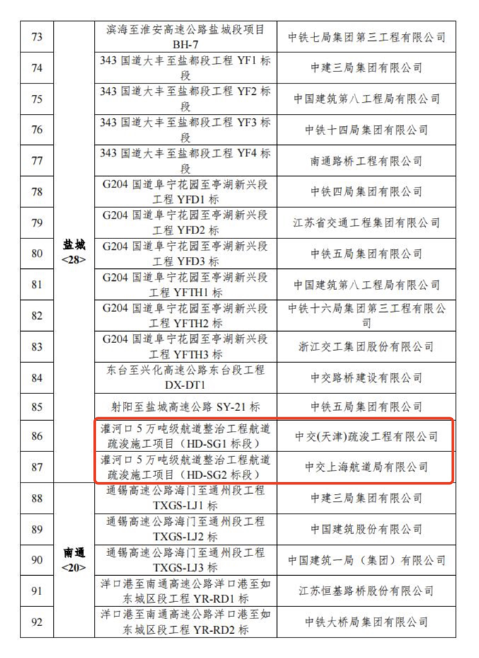 近日,省交通运输厅发布2022年度全省公路水运工程平安工地建设省级“示范工程(工地)”考核评价结果,灌河口5万吨级航道整治工程2个疏浚标段获评2022年度江苏省公路水运工程平安工地建设省级“示范工地”。