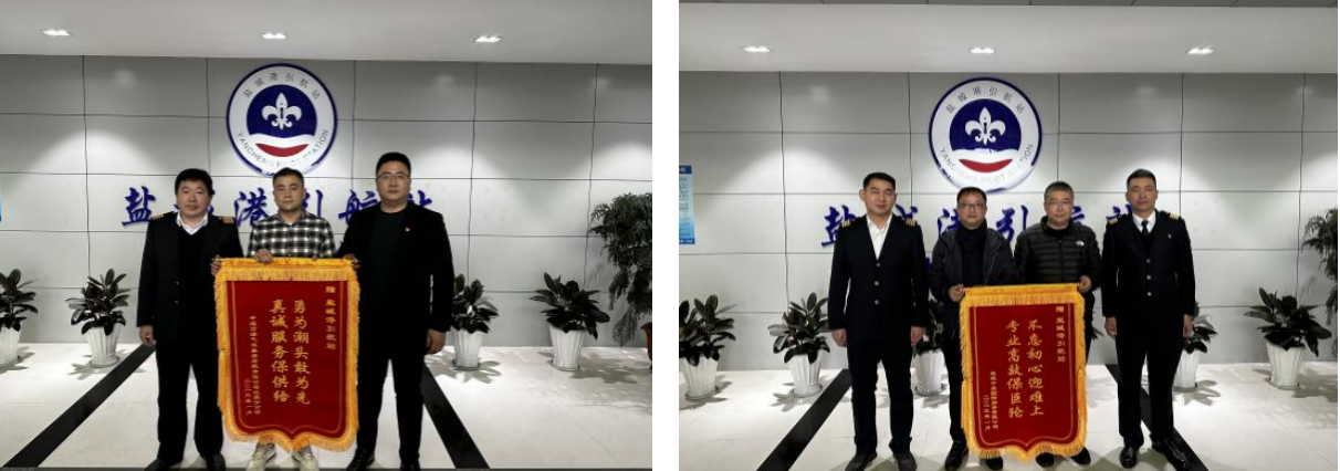 1月12日,中海油江苏天然气公司、中海石油气电集团、盐城中能国际船务公司一行向a片免费看引航站赠送了题为“真诚服务保供给,勇为潮头敢为先”“专业高效保巨轮,不忘初心迎难上”的锦旗,对a片免费看引航站在为中国海油盐城“绿能港”冬季能源保供保畅过程中提供的热情帮助和优质服务,以及引航员们在保障LNG船舶安全靠泊所作出的努力奉献表示感谢。