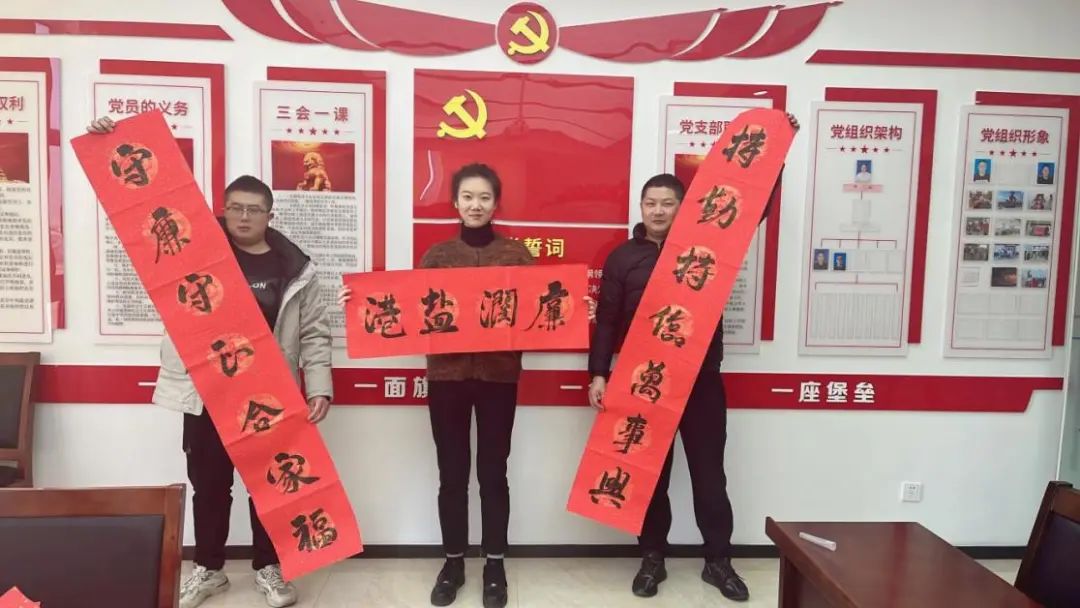 写春联送祝福,浓浓墨香迎新春,为弘扬传统文化,涵养廉洁新风,营造节日氛围,近日,响水港区开展“书廉政春联 扬正气清风”活动。