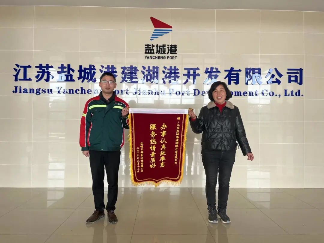 一面锦旗不仅是港口企业对建湖港区工作的肯定和激励,更意味着一份责任、一种使命。下一步,建湖港区将继续秉承“以客户为中心、以市场为导向”的理念,进一步提升服务质效,让企业幸福指数升级。