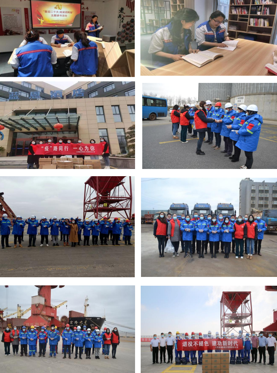 组织开展党建和团建活动24次,联谊活动1次,各类慰问活动10次,组织开展了读书分享会、主题演讲比赛、师徒协议签订、疫情防控志愿服务、无偿献血、“海燕”班组码头学雷锋、“五一”工会送温暖、职工子女中高考送真情等活动。