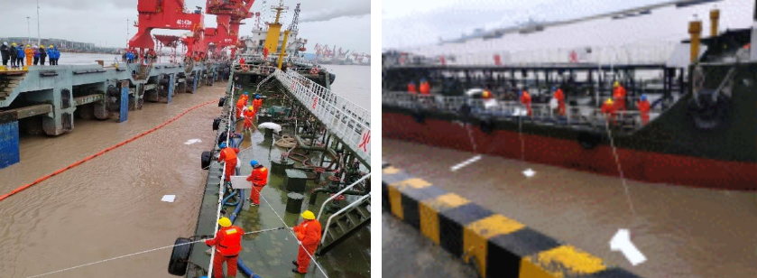 近日,江苏响水港港务公司在4#泊位开展船舶溢油应急处置联合演练。