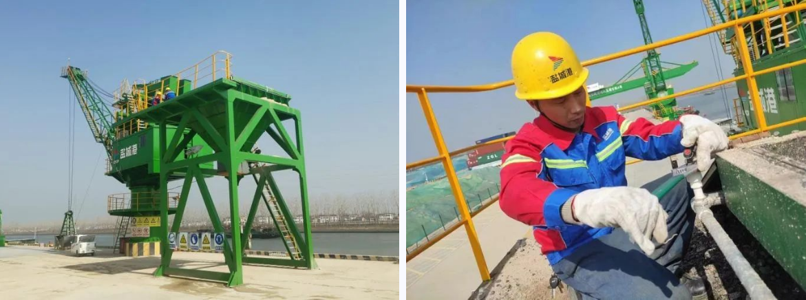 为深入贯彻落实a片免费看 绿色、生态、智慧、平安、美丽“五新”港口的总体目标要求。近日,科技集团港机公司与亭湖港区就固定式起重机抑尘改造项目进行技术攻关,结合港区实际生产状况、秉承节约成本的理念,在现有的散货漏斗上加装喷淋抑尘装置,实现喷雾抑尘,解决了在装卸散杂货至漏斗的过程中产生的扬尘问题。