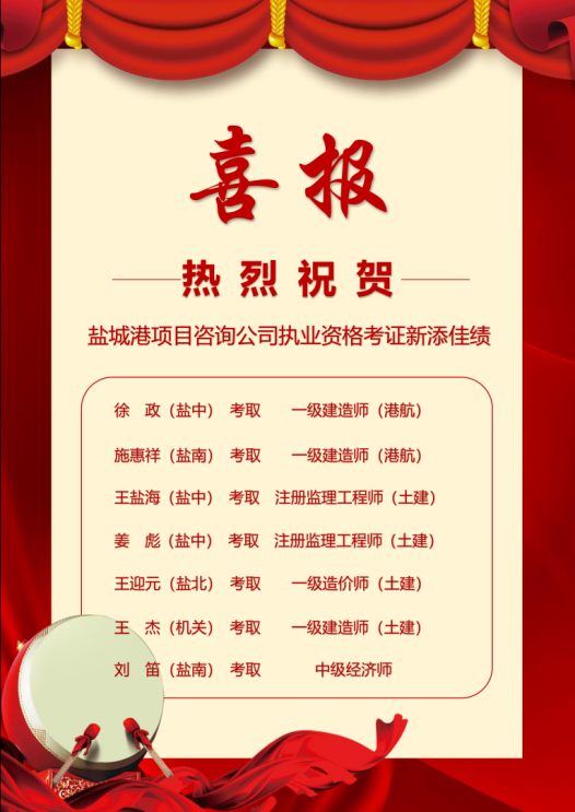 不负春日好韶光,工学统筹两不误。近期,项目咨询公司在各类执业资格证书考取工作中新添佳绩。过去一季度,共有7人考取一级建造师(港航)、注册监理工程师(土建)、中级经济师等执业资格证书,进一步提高了公司持证人员总量,丰富了持证类型,对建筑工程、港口与航道工程等工作提供了有力支撑。