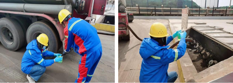 “木兰”班组严格执行加油站“卸油八步法”,要求班组人员接卸业务技能全面过关,能够有效控制油品交接环节的误差和损耗,做好接卸员和驾驶员“双确认”,有效规避混油风险,卸油前从罐车底部取样,从颜色、气味、有无机械杂质、有无水分等方面对油品进行质量再验收。